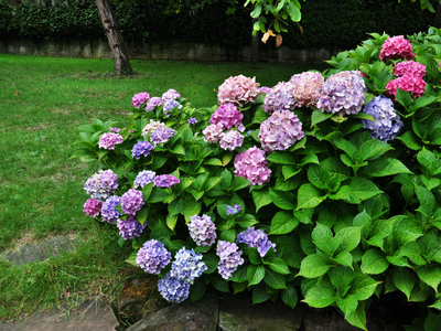 하늘색, 분홍색, 보라색, 흰색 수국이 다채롭게 펼쳐져 있어